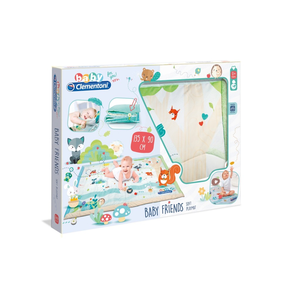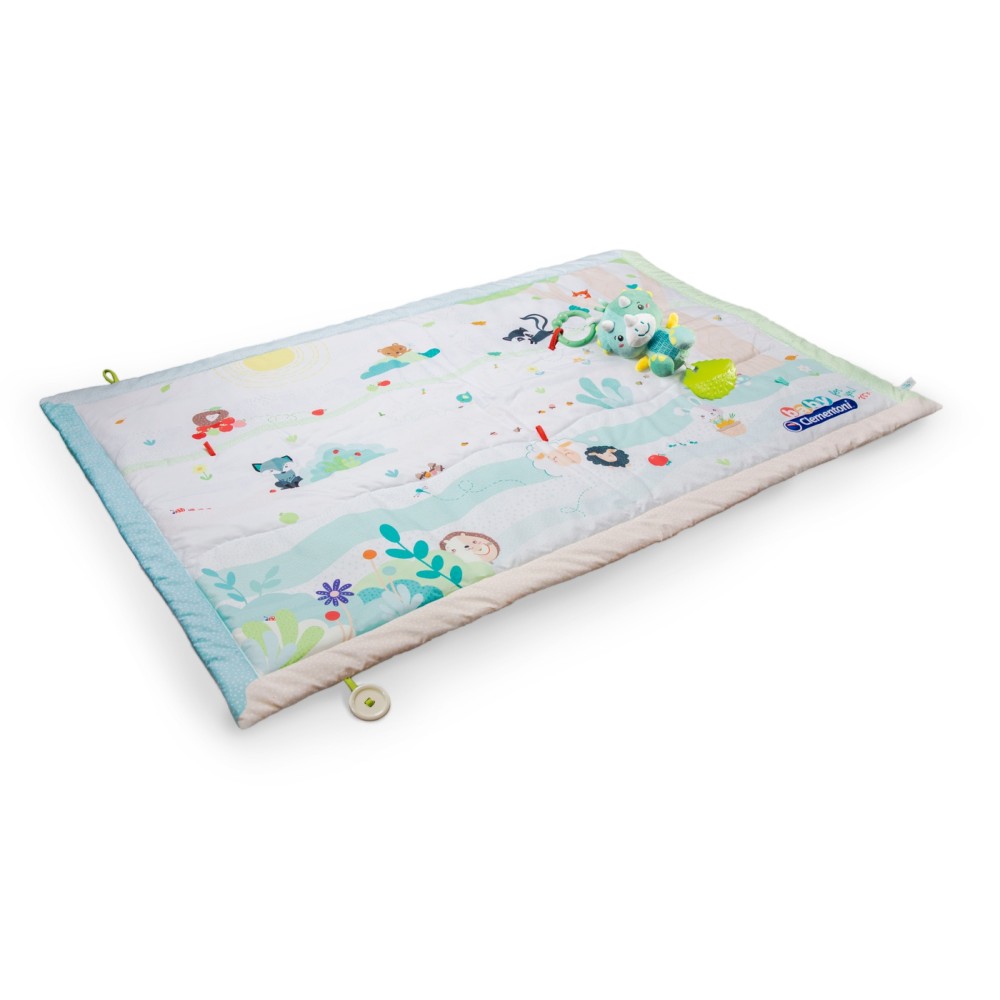 Szívesen játszanak, kúsznak, másznak, fordulnak át majd a kicsik a puha, párnázott játszószőnyegen, ami elősegíti a szenzoros készségek, a finom- és nagymotoros készségek fejlesztését. A kényelmes játszószőnyeg és a cuki minták mókás szórakozást kínálnak a legkisebbeknek és hosszasan lekötik figyelmüket. A barátságos kisállat minták és a kialakított hurkokba beakasztható játékok, csörgő vagy rágóka biztosan ösztönzik majd a babákat, hogy megtegyék az első önálló mozdulatokat. A játszószőnyeg praktikusan összetekerhető és a gombnak köszönhetően összehajtott állapotában könnyedén rögzíthető, így akár hordozható is.